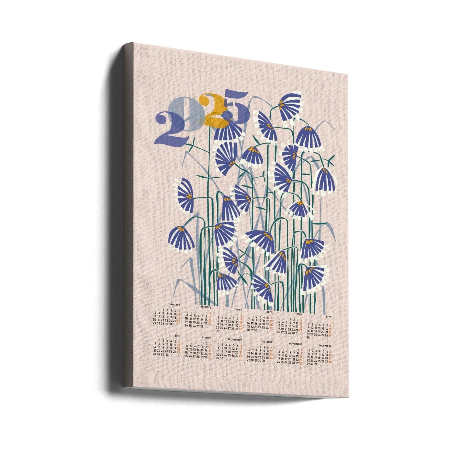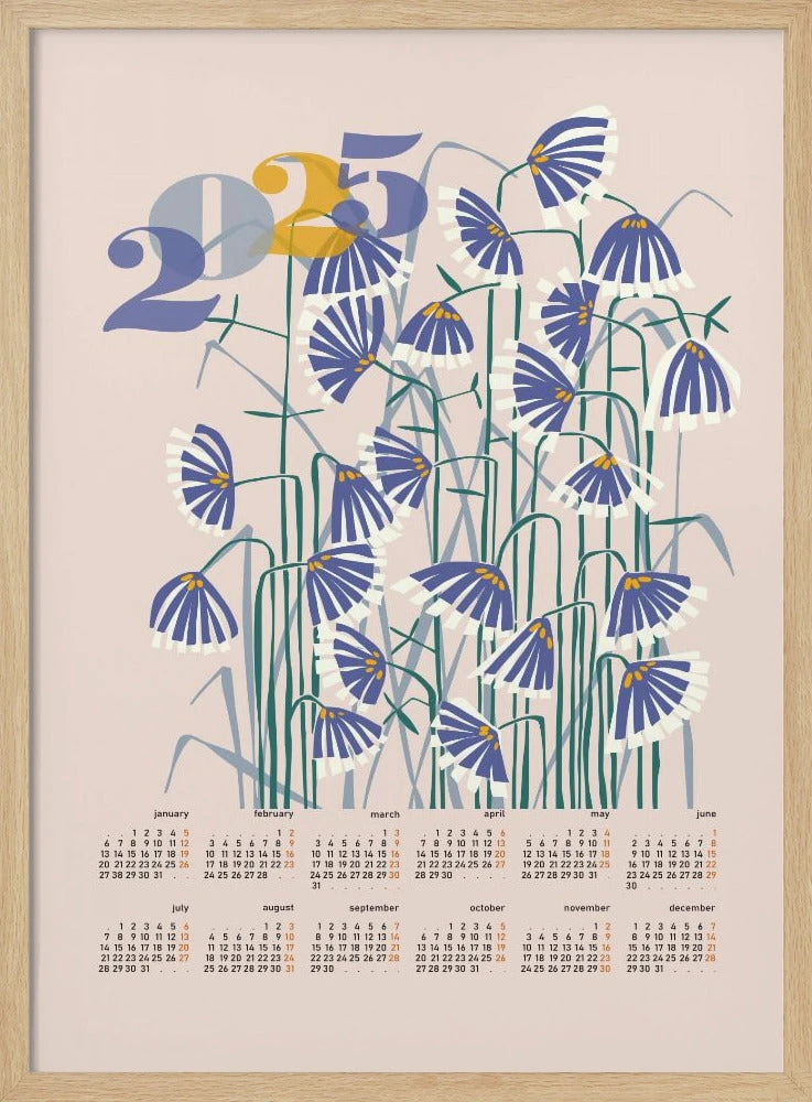 Explore our many print options for calendar 2025 Linocut flowers peachy pastel by artist Annick.