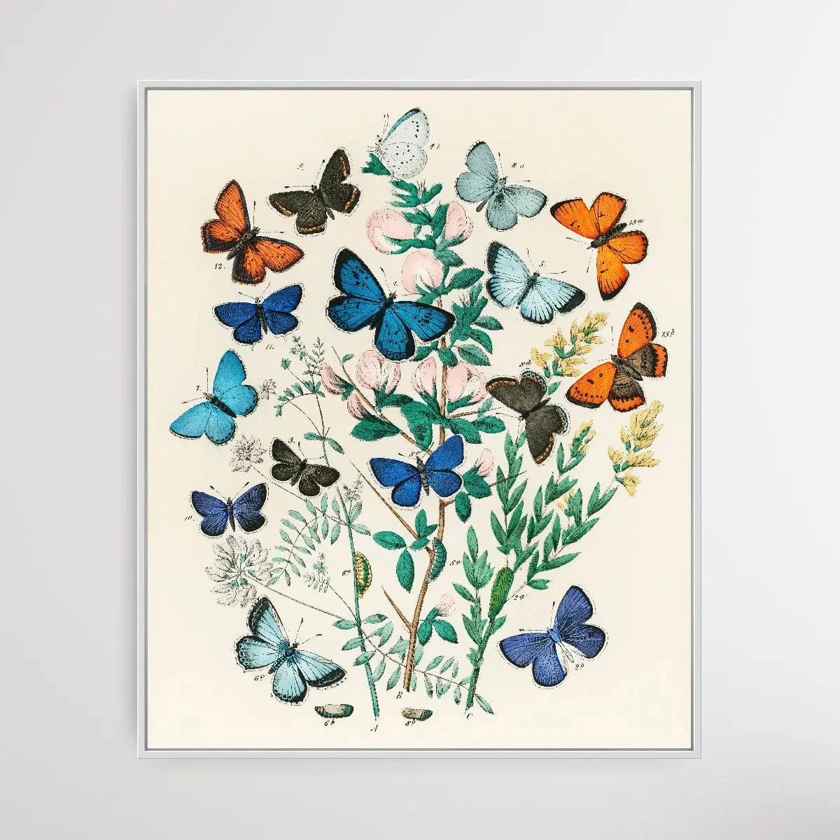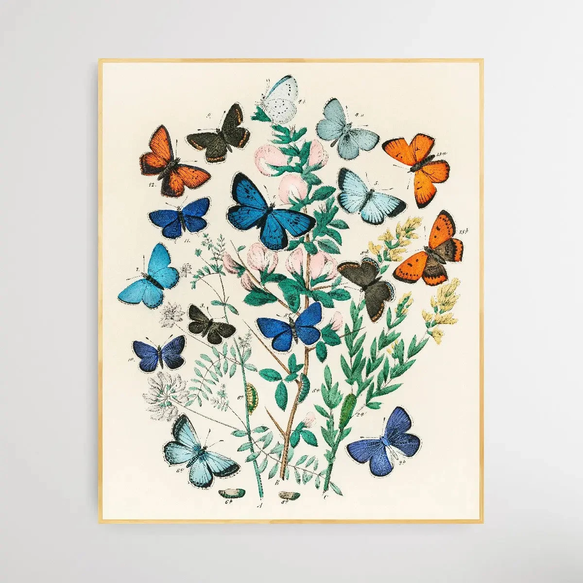 Illustrations from the book European Butterflies and Moths by William Forsell Kirby (1882), a kaleidoscope of fluttering butterflies and caterpillars.