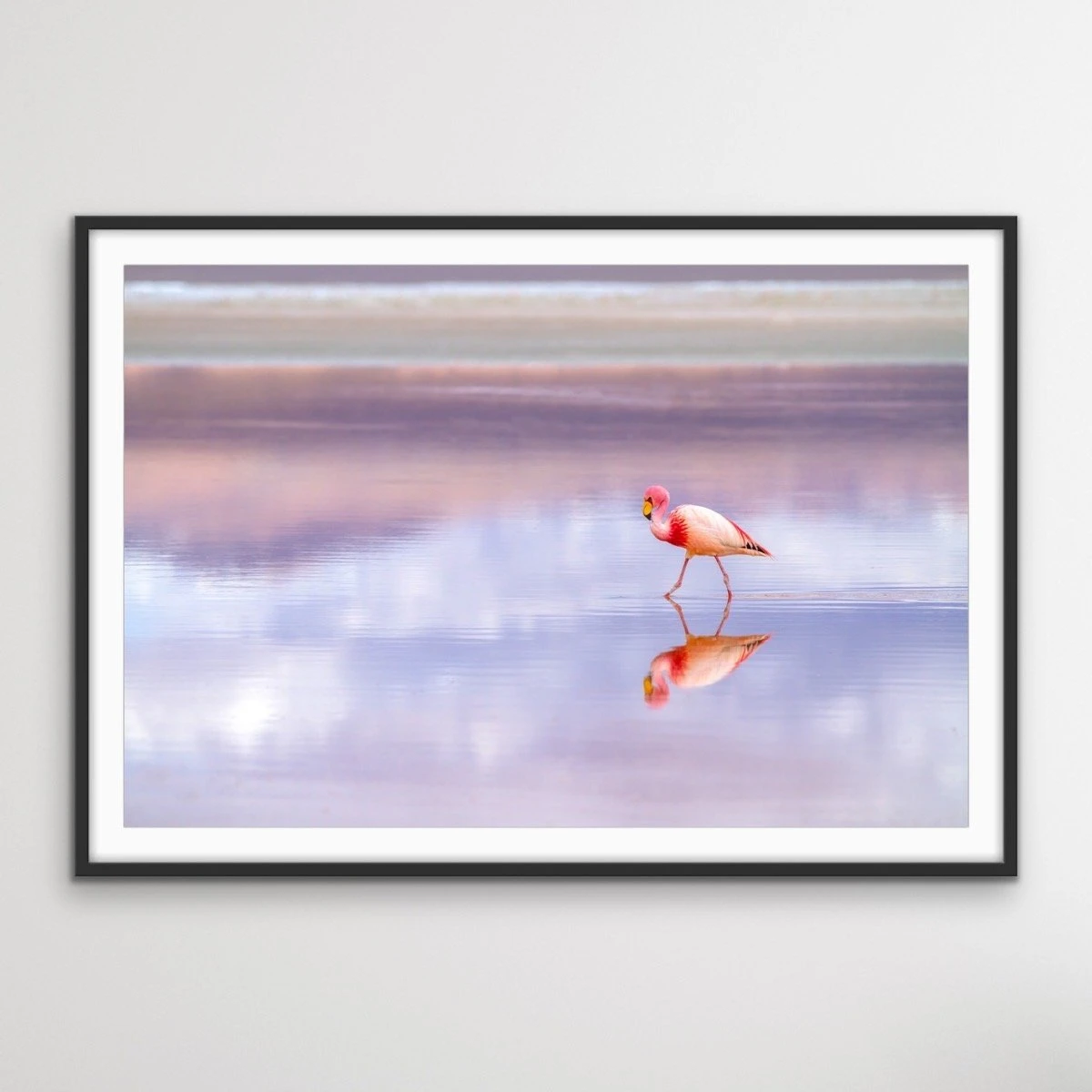 Fun and fabulous, this bold pink print features a beautiful flamingo alone on a softly lit beach at Sunset. This print is warm and inviting and offers a beautiful coastal scene captured forever.